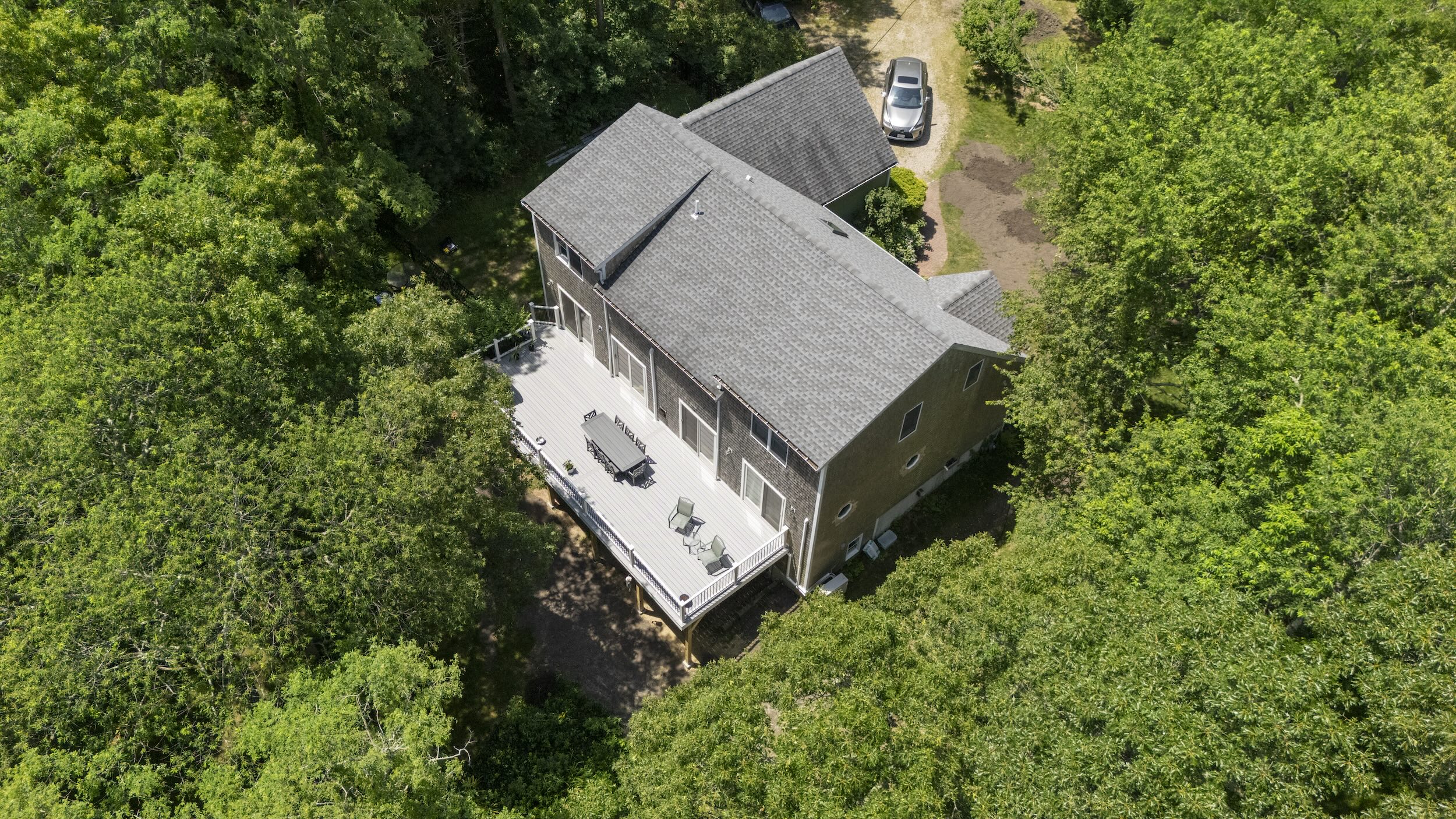 This elevated deck in Barnstable, Massachusetts had served the homeowners well for over 25 years. Built with mahogany decking, it remained in use but was beginning to show signs of deterioration. With long-term plans in mind, the homeowners partnered with MassTech Roofing & Building to rebuild the structure, bring it up to modern code, and expand its footprint to accommodate future upgrades.