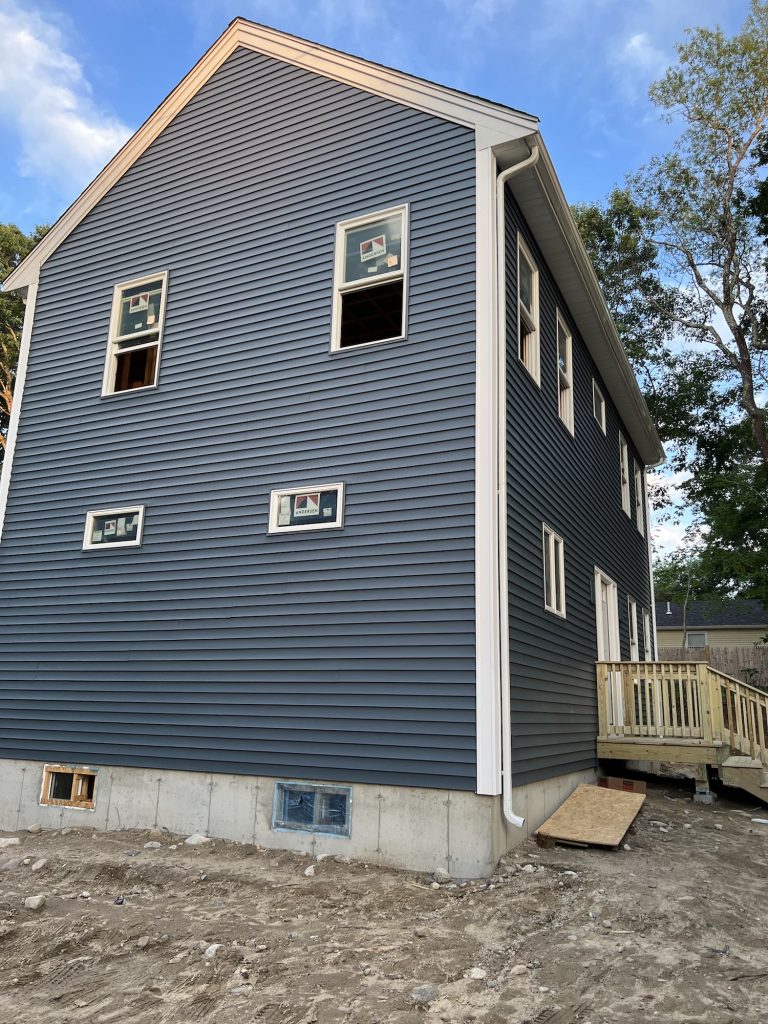 The owner of this property in Hanson, Massachusetts approached us. They purchased the original, 1-story 700 square foot home as an investment property. To maximize their rental potential, the owner approached MassTech with the idea to do a 2-story addition. The new build is 1,560 square feet, 2 stories, 2 bedrooms, 1.5 baths with a basement that has potential to be finished for additional living space.